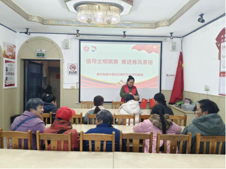 为深入推进殡葬改革,倡导文明、绿色、节俭的殡葬新风,3月4日,新村街道中路社区在新时代文明实践站开展了一场以“倡导文明殡葬 推进移风易俗”为主题的宣讲活动。